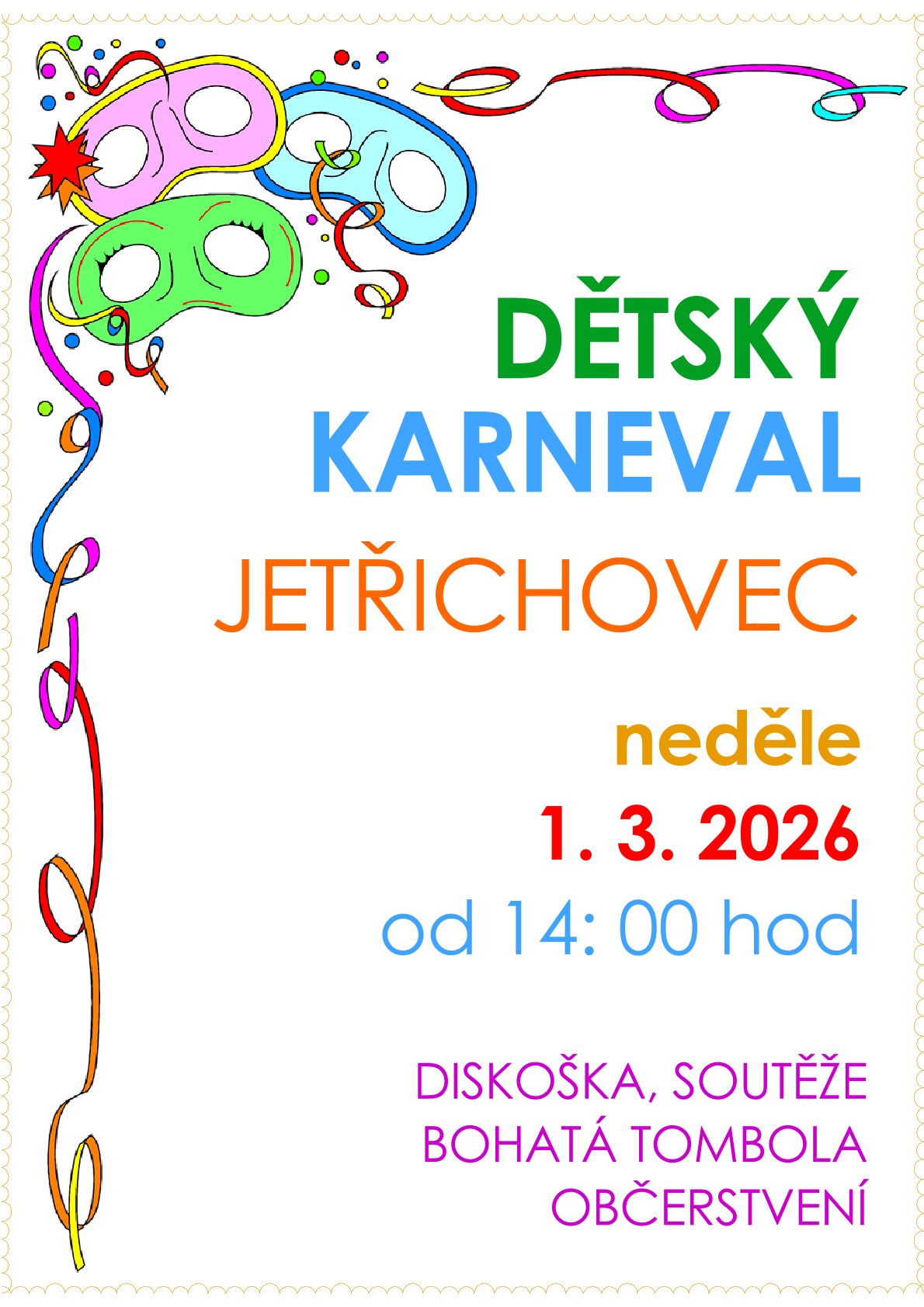 Sbor dobrovolných hasičů Jetřichovec Vás zve na Dětský karneval.