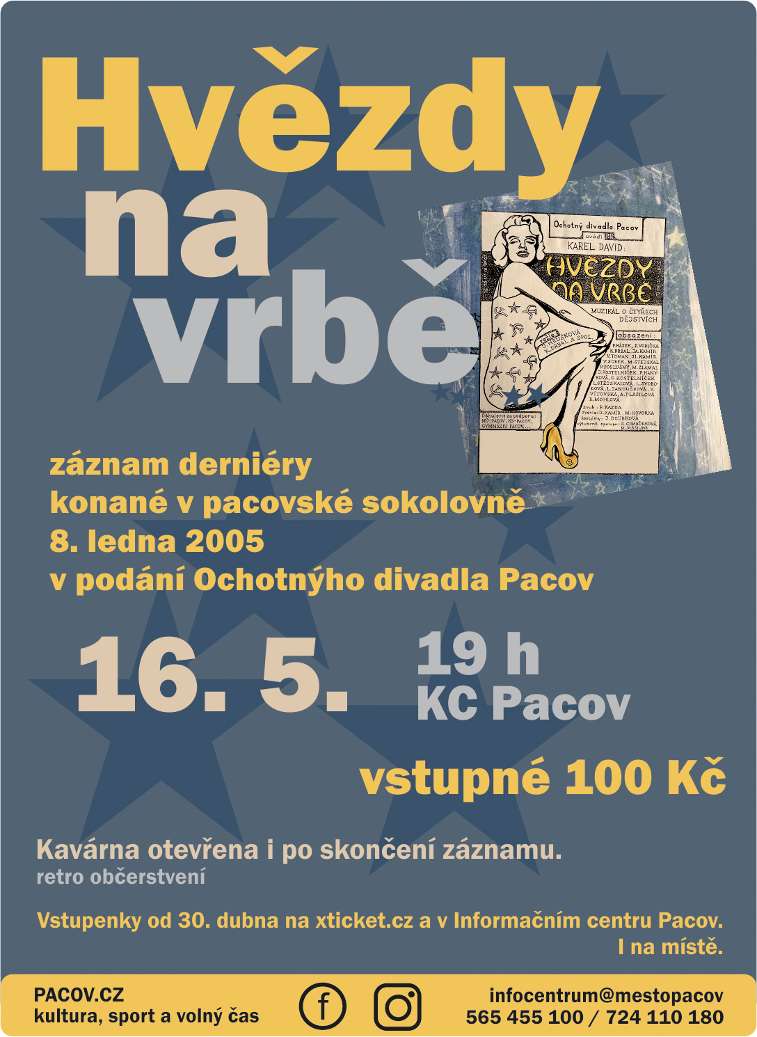 Projekce derniéry představení Hvězdy na vrbě v podání Ochotnýho divadla Pacov z 8. ledna 2005 v pacovské sokolovně.